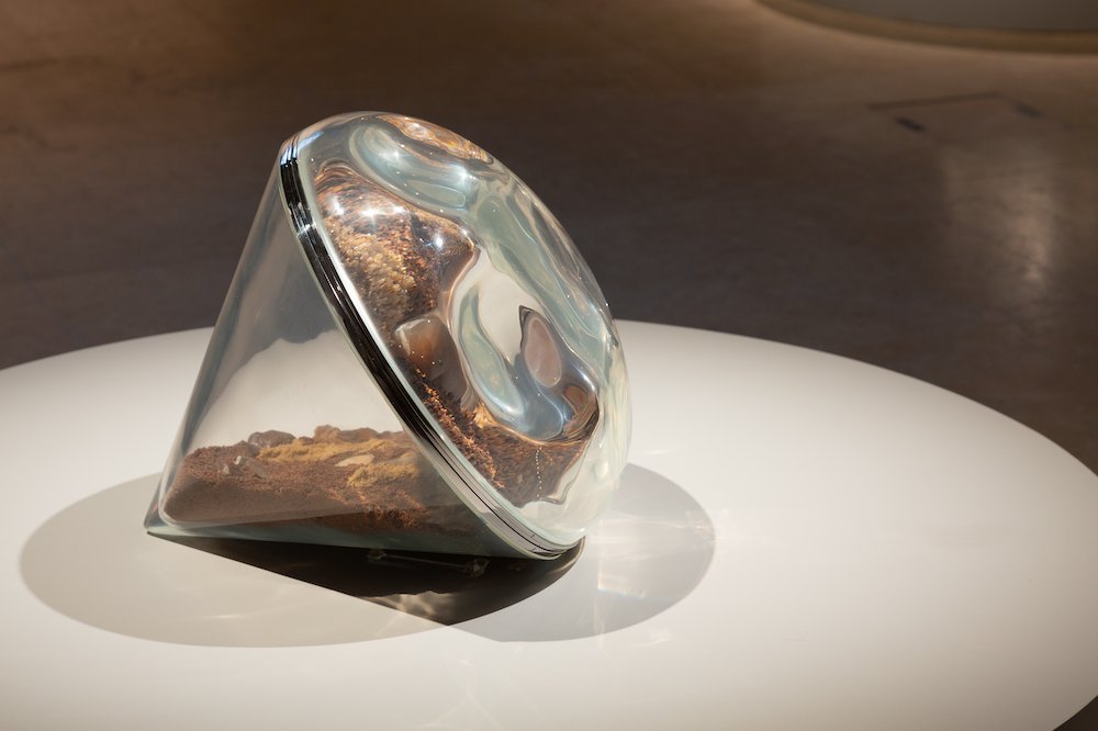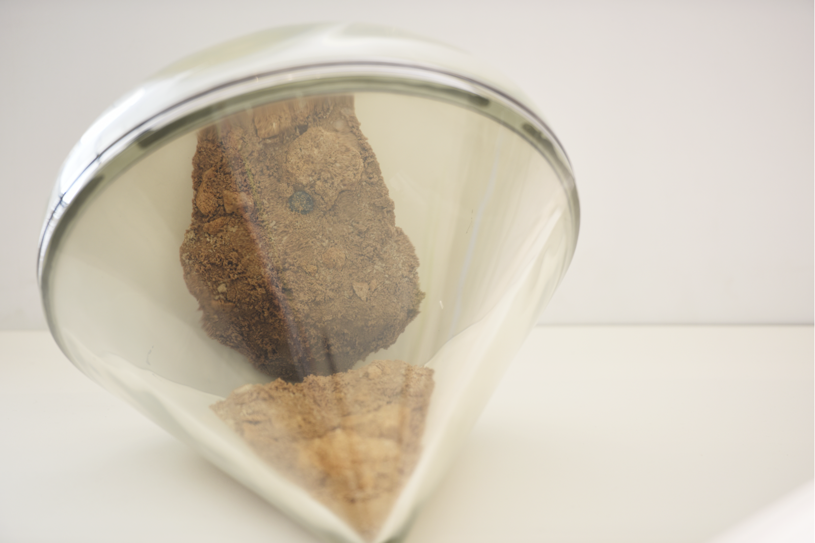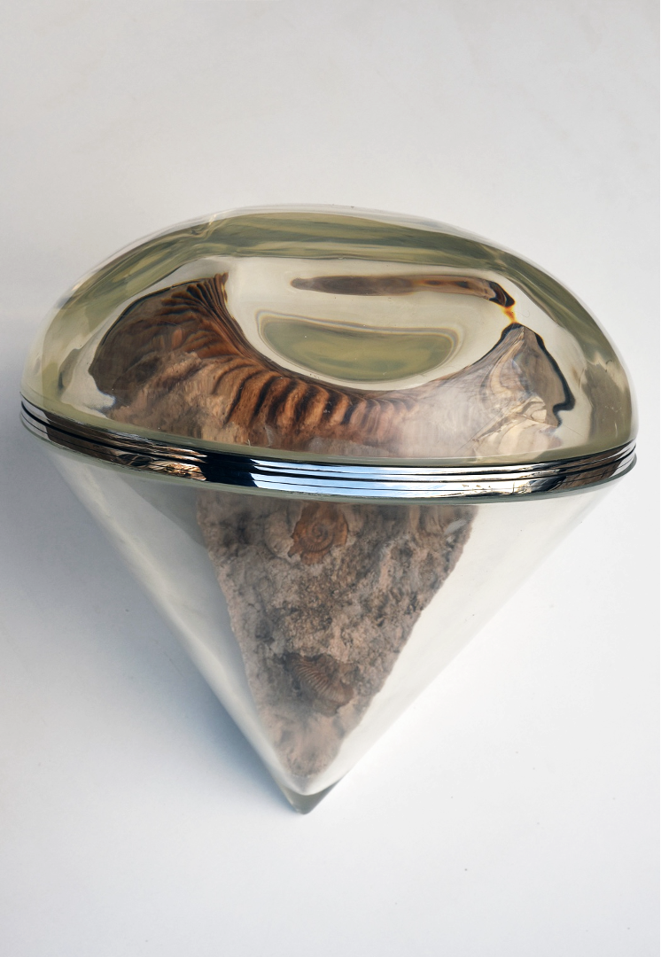 Infinitely minute traces unearthed from deep underground are reproduced and reimagined – made visible only through magnification, as they escape the naked eye. The sculptures provoke a radical shift in point of view, scale, and reference. By rendering microscopic traces from an abstract past visible, they also conjure a form of fantastic time-travel, akin to science fiction.