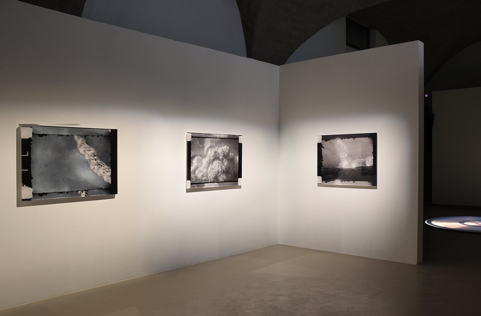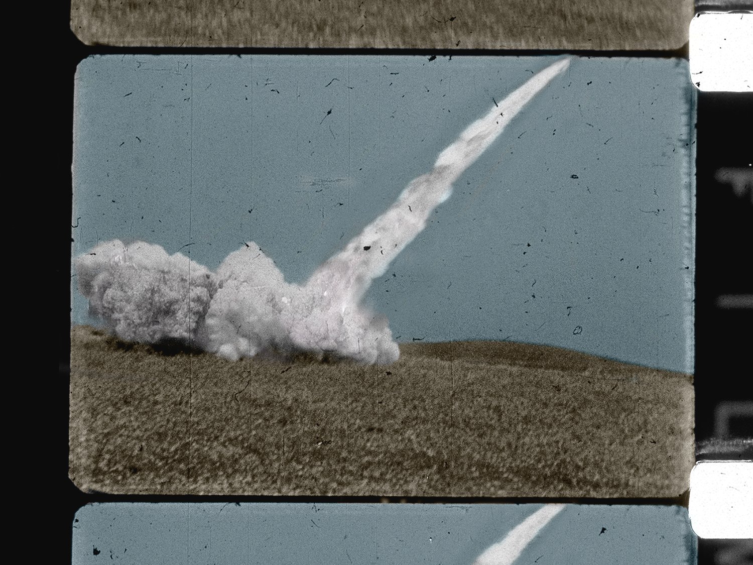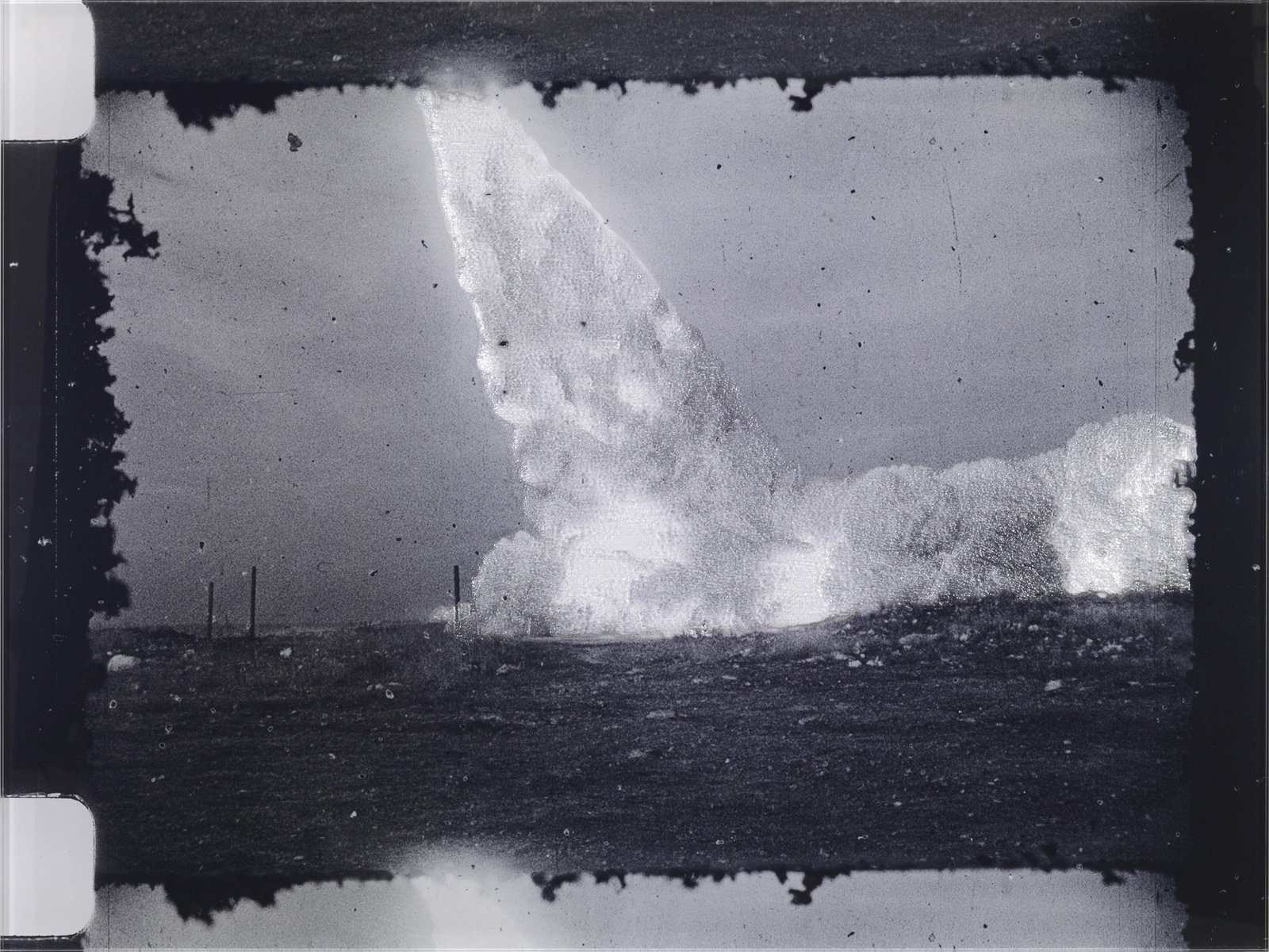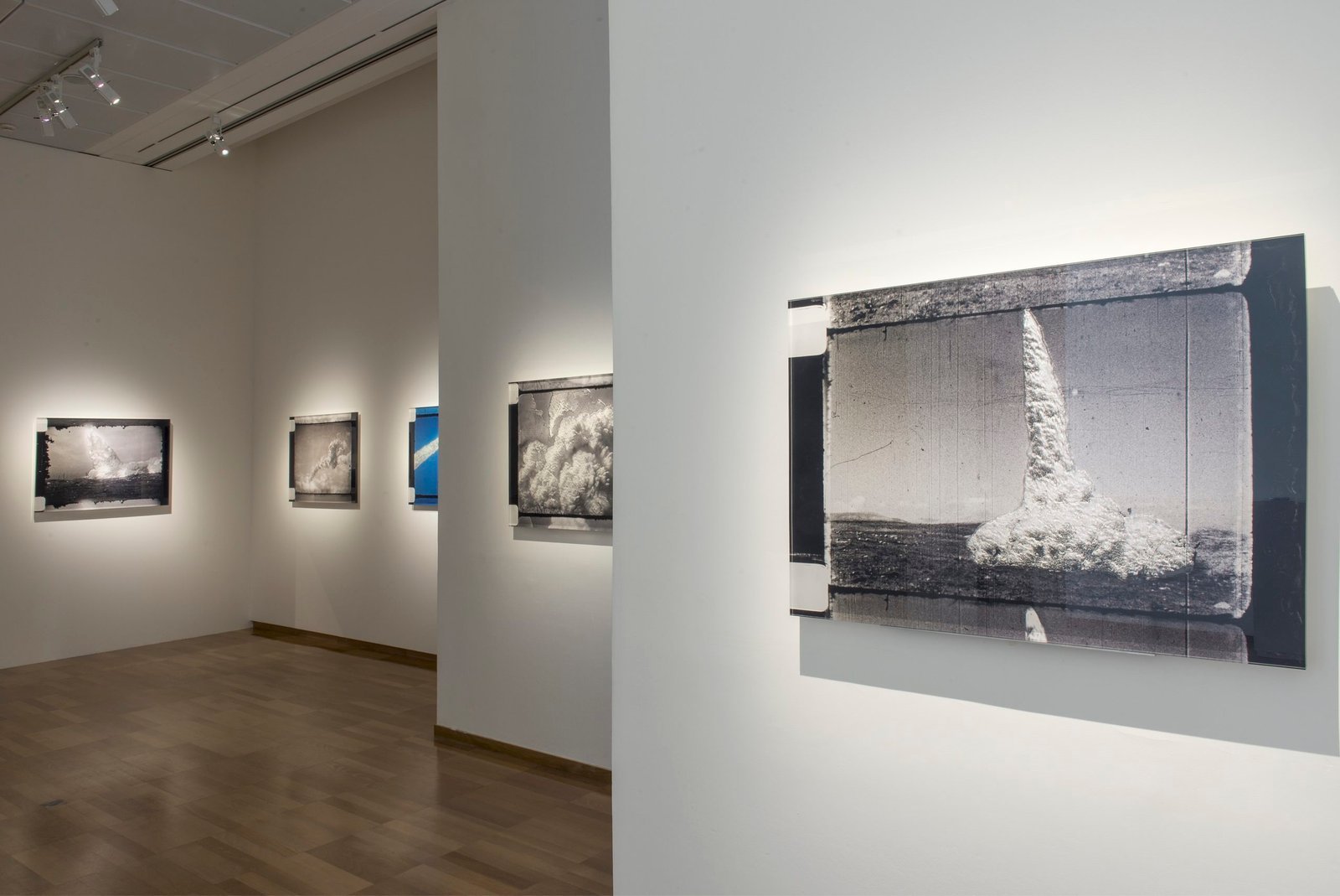 Most of the photographers and cameramen who attended the launch of the rockets missed, nearly systematically, the decisive moment – the taking off. All they managed to capture was the smoke trailing the rocket, its trace. Here, sculpted in Plexiglas in a strange form of immobility, are extracts of films, where the fleeting smoke disappears slowly, merges with the clouds, is lost amongst them… An attempt to give a material form to that immateriality.