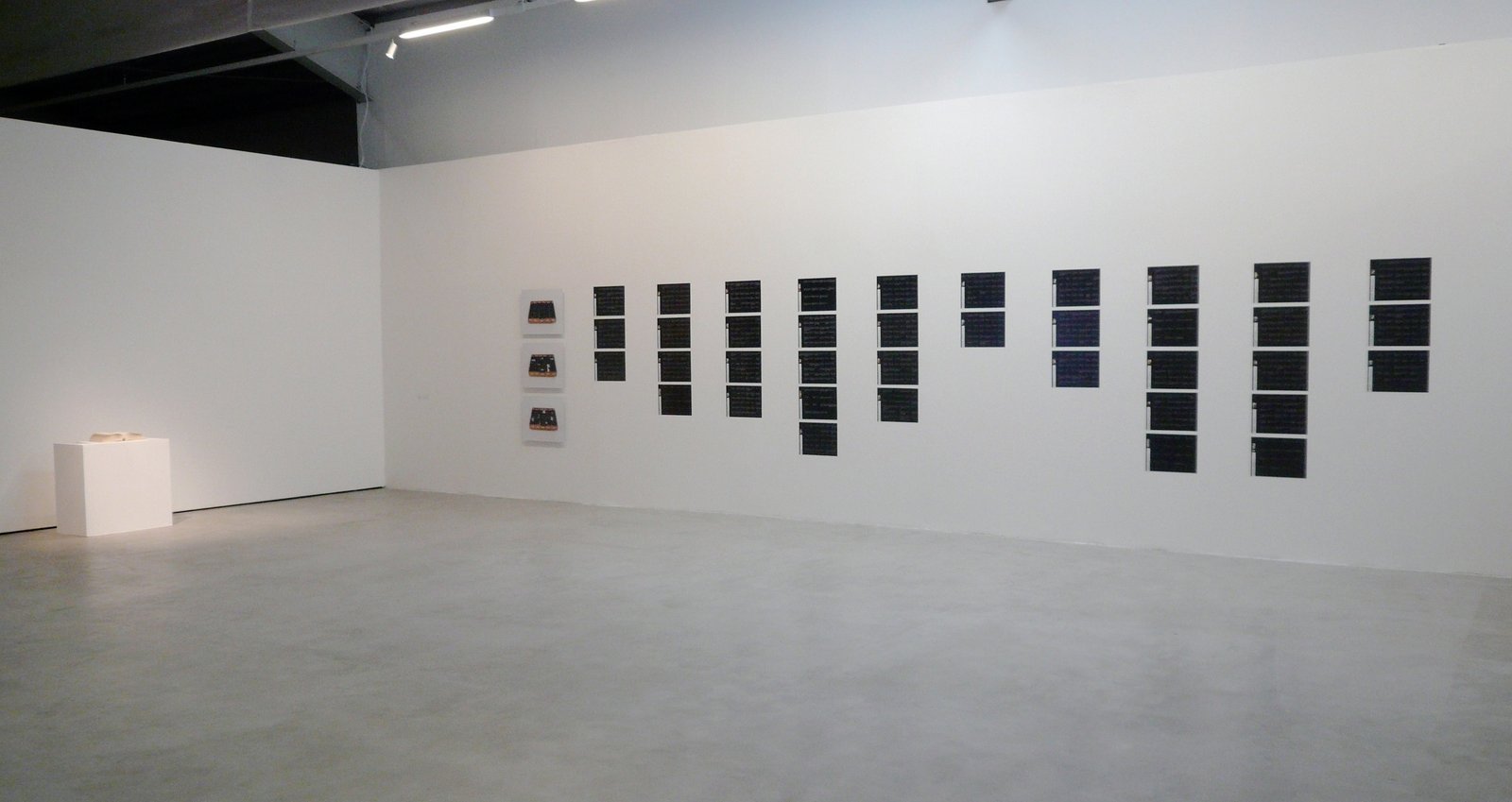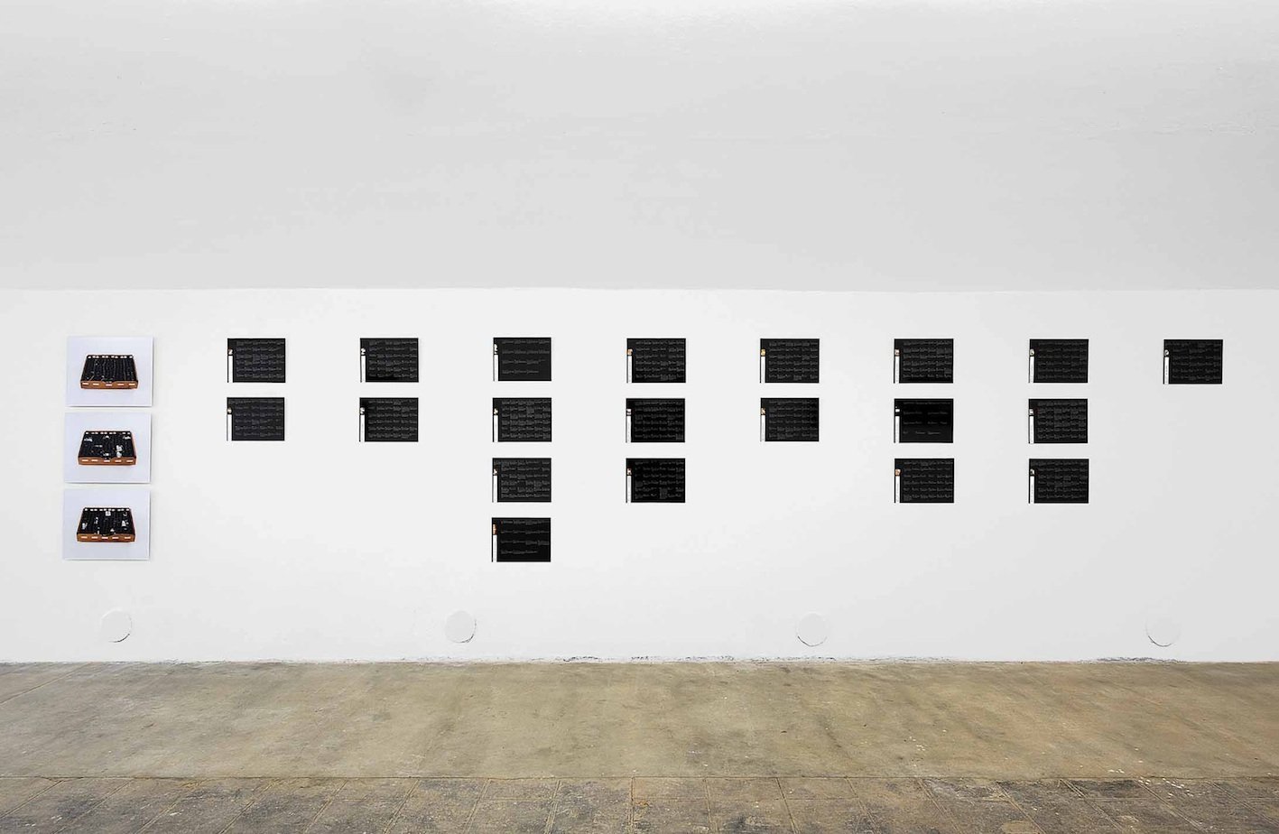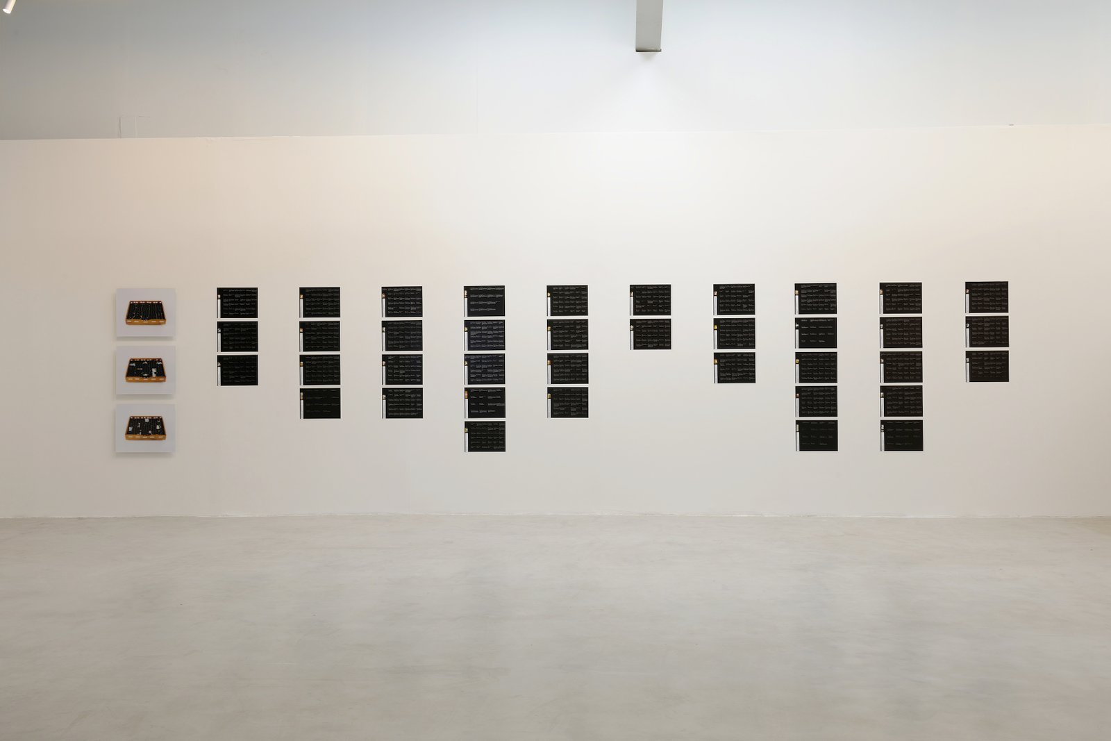 3 photographic prints on Diasec, 47 × 58 cm each, and 38 digital prints,