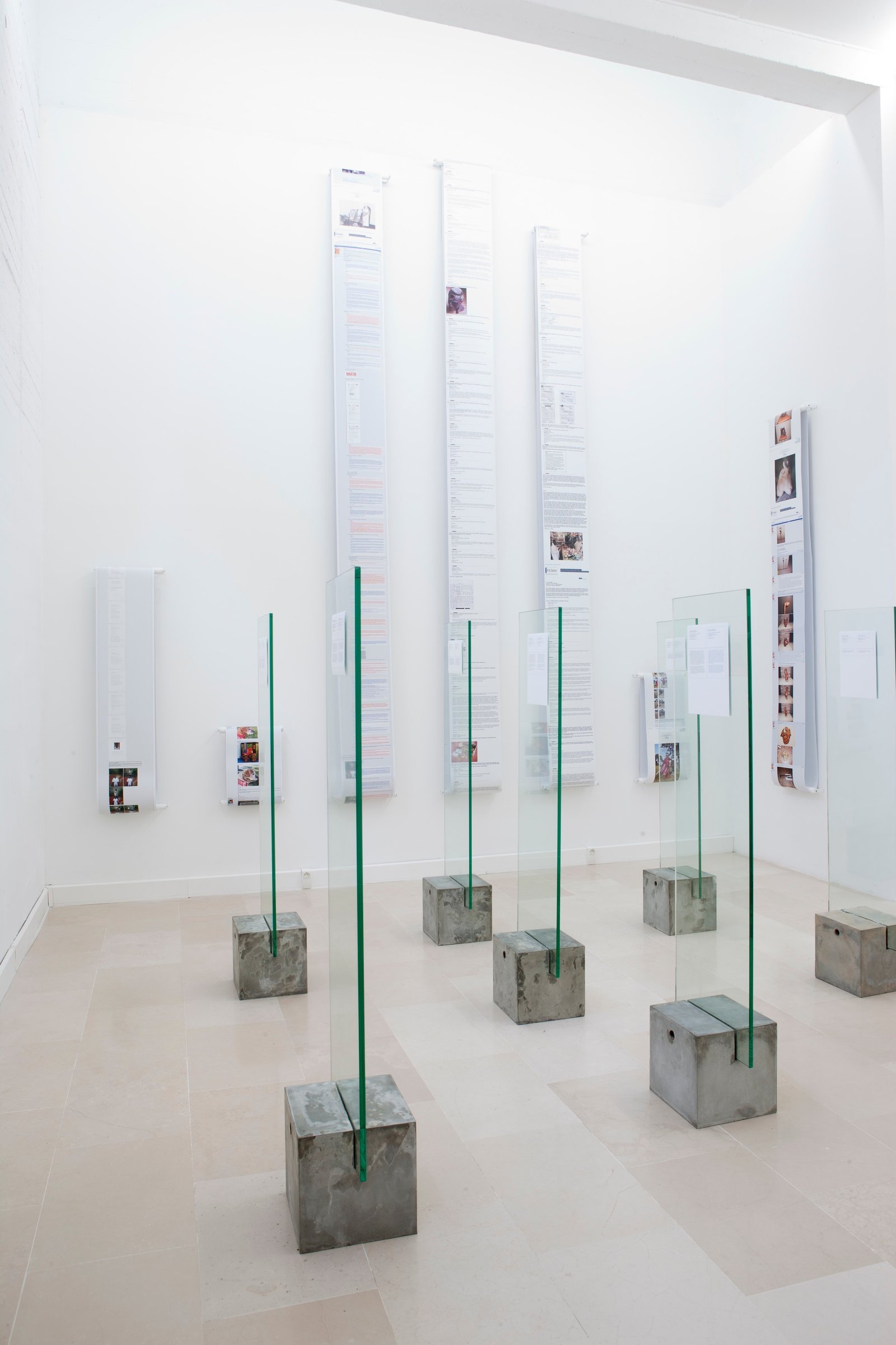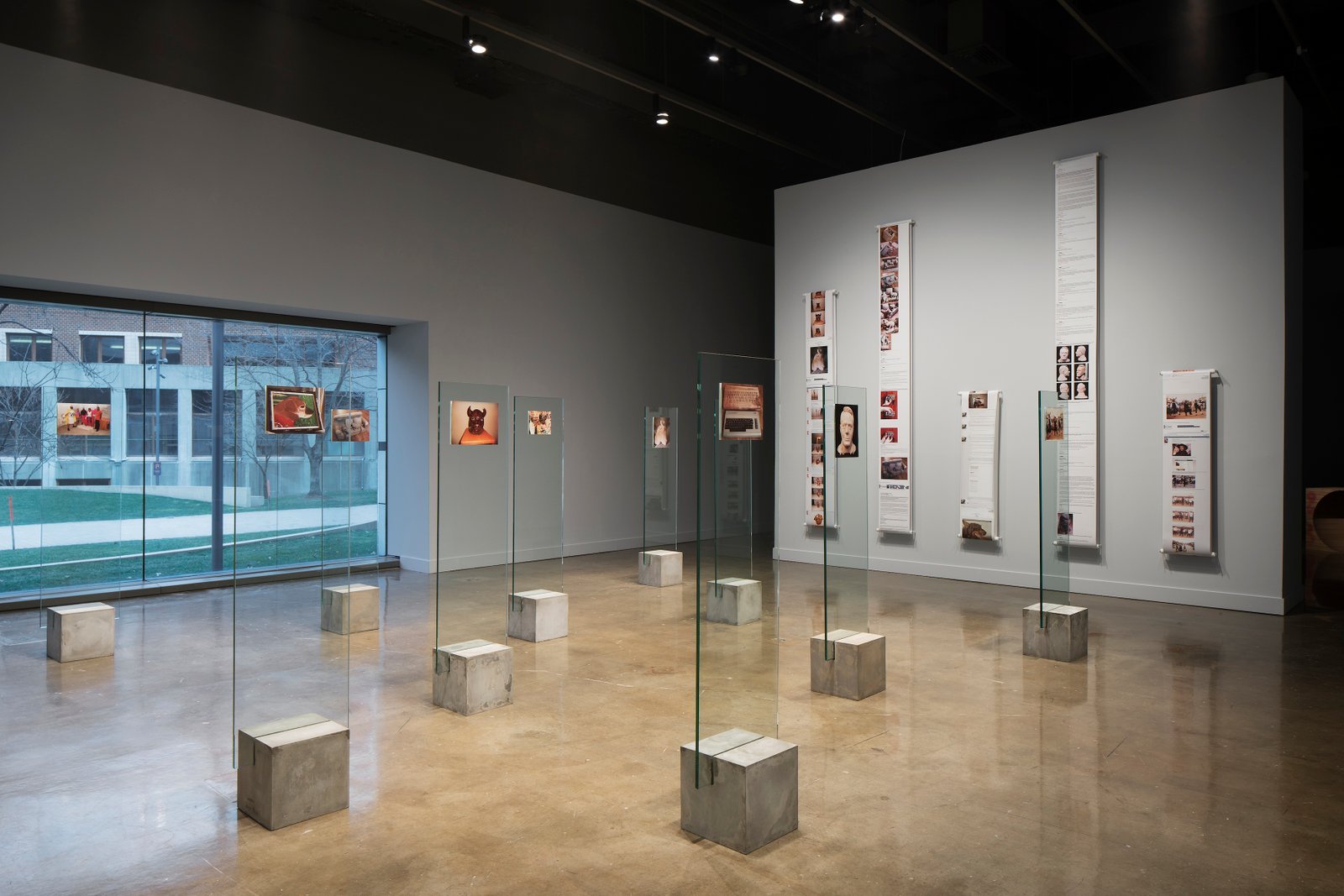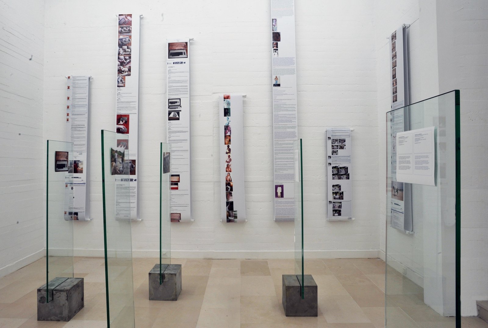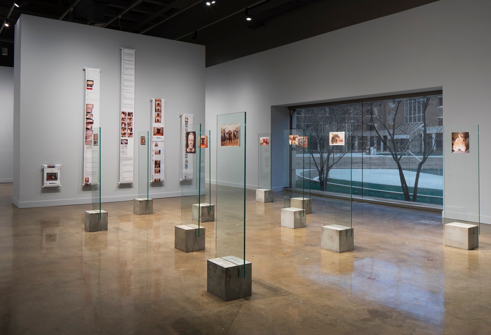 Displays, concrete, glass and photographs