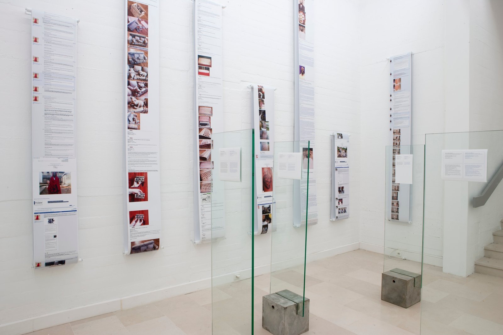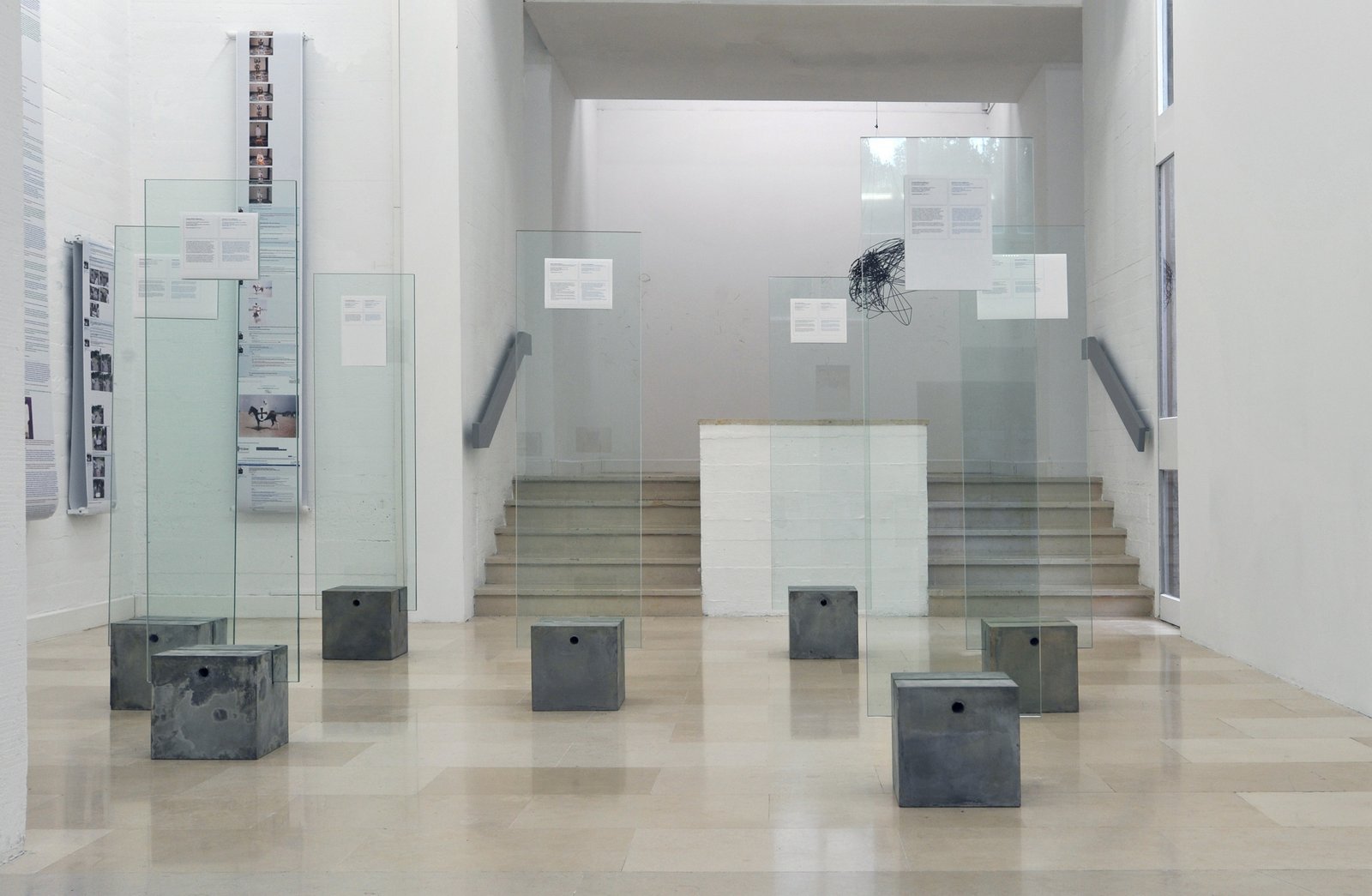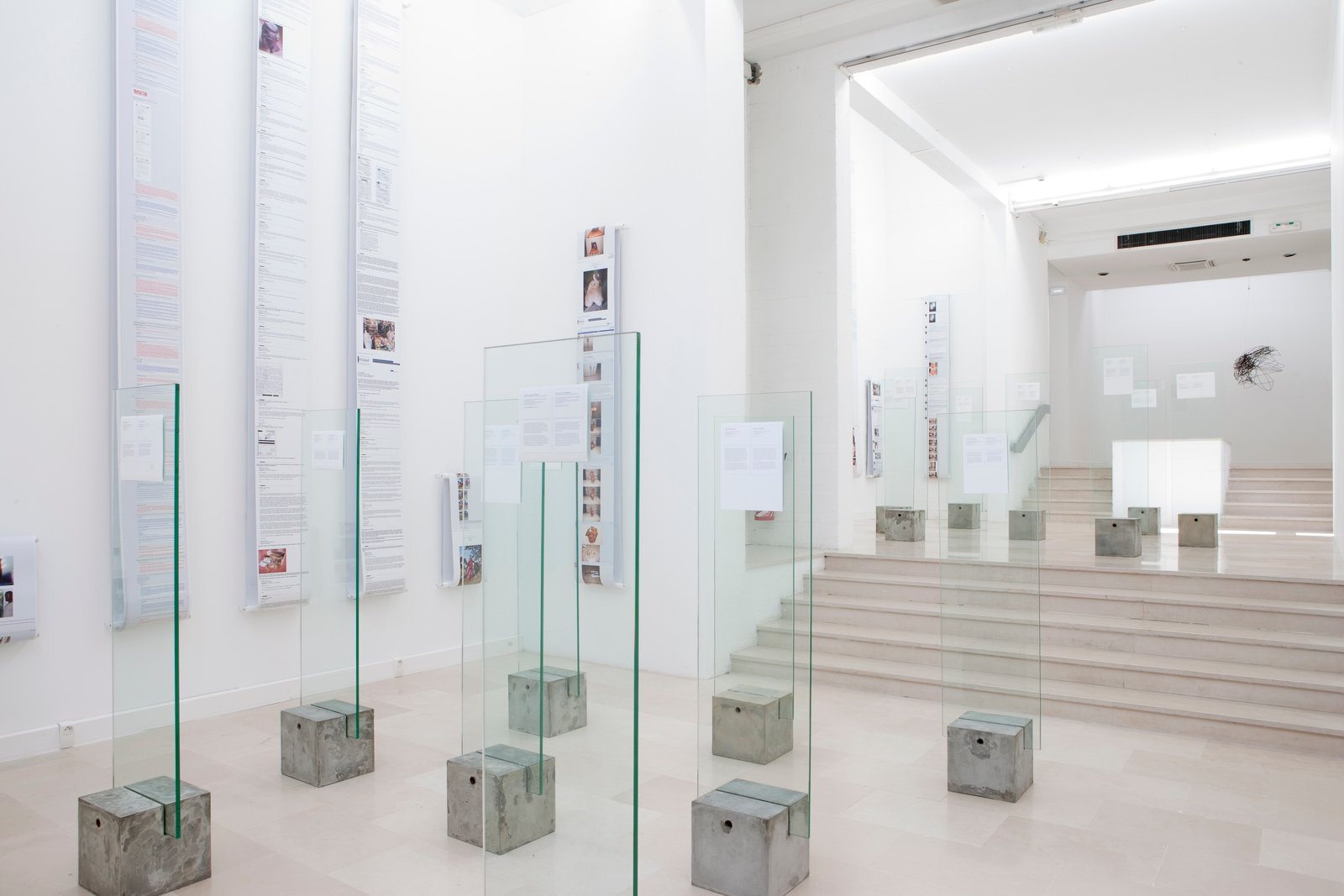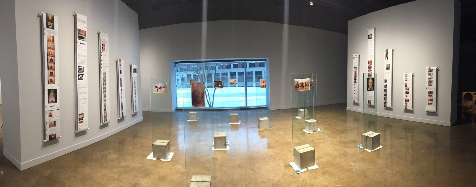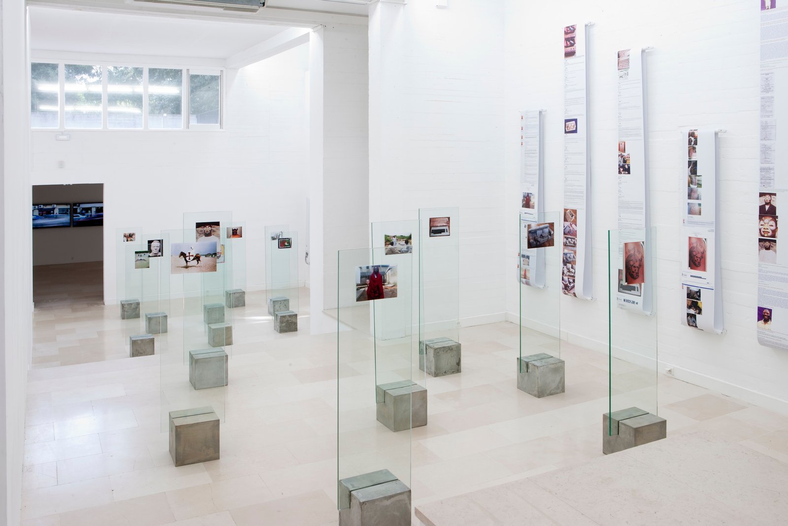 Displays, concrete, glass and photographs